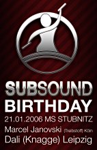 Also der Herr Janovski hat zusätzlich ja auch noch ziemlich gut aufgelegt - Groove gegen Kälte oder so. Und mal abgesehn von den Temperaturen für die ja niemand was konnte wars ne sehr schöne Feier - gebührendes Einjähriges für SubSound. Daneben viele Bekannte und nette Gespräche mit selbigen, schade nur dass sich meine Kommunikationsfähigkeit im Verlauf des Abends reziprok dem Alkoholpegel entwickelt hat, deswegen bin ich auch schon verhältnismäßig früh nach Hause... ;)